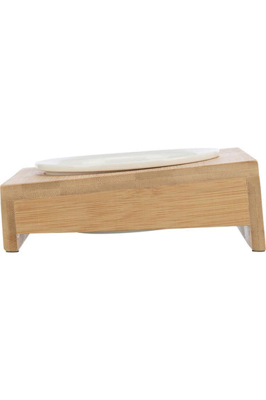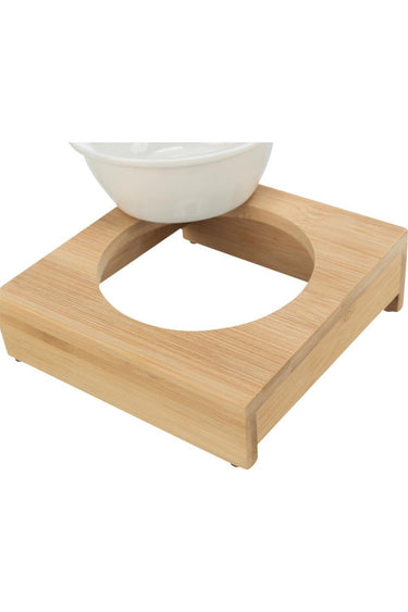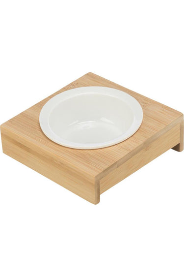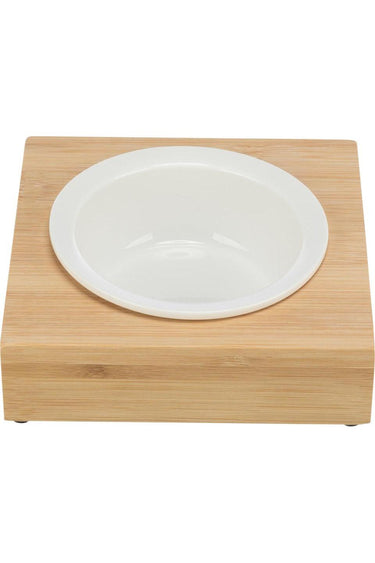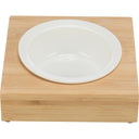 Dette produktet er en keramikkskål med en holder laget av bambus. Skålen har en kapasitet på 0,25 liter og en diameter på 12 cm. Den er designet i en kombinasjon av hvitt og ecru. Den keramiske skålen er montert på en holder laget av bærekraftig bambus, noe som gir den et elegant og moderne utseende. Produktet er svært stillegående under bruk og har sklisikre silikonprikker på bunnen som forhindrer at bollen sklir eller velter under bruk.