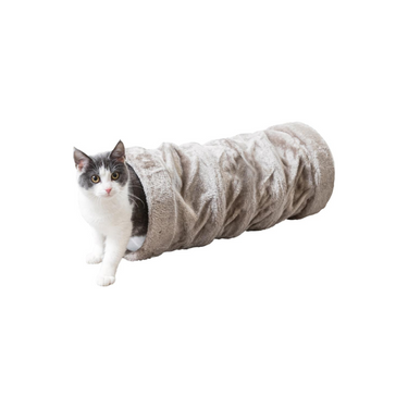 Denne plysjtunnelen, som er laget av mykt og behagelig plysjmateriale, skaper en koselig og innbydende atmosfære der katten din kan hvile og leke. Tunnelen har innsydd knitrende folie som gir leken en ekstra dimensjon og fanger kattens oppmerksomhet. Den lette og fleksible konstruksjonen gjør det enkelt for katten å utforske og krype gjennom tunnelen. Med denne fløytetunnelen kan katten din leke, hvile og ha det gøy på én gang.