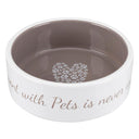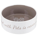 Pet's Home keramikkskål er den perfekte løsningen for å gi hunden din en stilig og funksjonell mat- og vannskål. Skålen er laget av keramikk av høy kvalitet som er slitesterk og enkel å rengjøre. Skålen kommer i en vakker kremfarget og lyseblå farge som passer perfekt inn i enhver innredning.