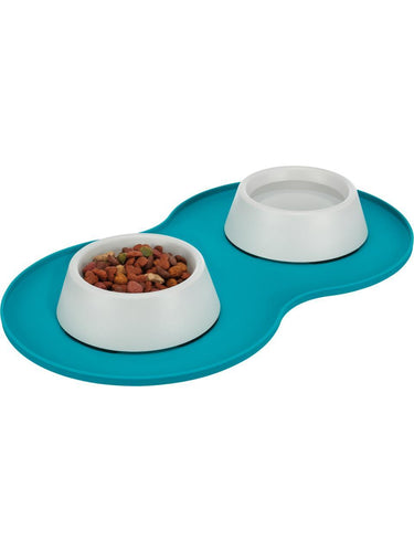 Dette produktet er en skålmatte laget av silikon, noe som gir den fleksibilitet og holdbarhet. Den høye kanten fungerer som en barriere som hindrer søl av mat eller væske i å renne ut på gulvet, noe som bidrar til å holde området rent og ryddig. I tillegg sørger den sklisikre overflaten for sikkerhet ved å holde skålene på plass under bruk og forhindre at de sklir eller glir rundt. Denne kombinasjonen av funksjoner gjør den til et praktisk og pålitelig tilbehør til kjæledyrets spiseplass.