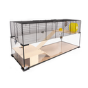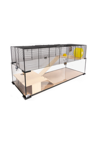 Burens øvre del består av et tradisjonelt nettinggitter som sikrer optimal ventilasjon og gir gnagerne en følelse av frihet. Dette området er perfekt for mus eller hamstere til å klatre, utforske og holde seg aktive. I tillegg fungerer den øvre delen som et sted for lek og måltider, og skaper et stimulerende og trivelig miljø for smådyrene dine.