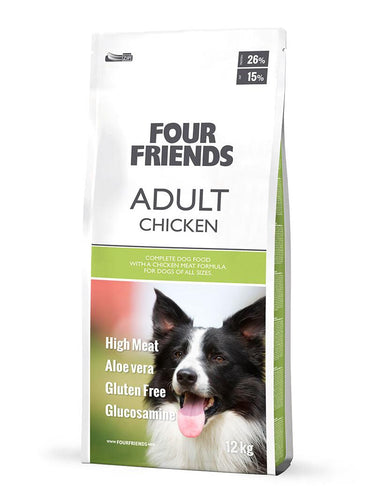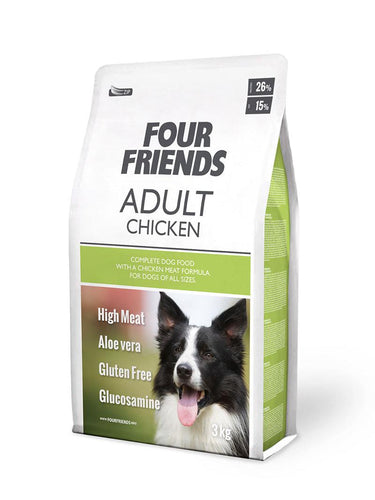 Et svært velsmakende fullfôr for den normalt aktive, voksne hunden av alle raser. 42 % rent kyllingkjøtt og rent kyllingfett kombinert med lakseolje gir de riktige amino- og fettsyrene som bidrar til gode byggematerialer for kroppen og en lett fordøyelig energikilde. Du kan merke på hvor lett hunden opprettholder muskelmassen, får en fin hud og en deilig glans i pelsen. Det er utmerket å kombinere FourFriends tørrfôr med våre meget smakfulle kjøttpølser, som finnes i flere smaker å velge mellom, dersom du har en hund som er på den "pirkere" siden og trenger interessante smaksopplevelser.
